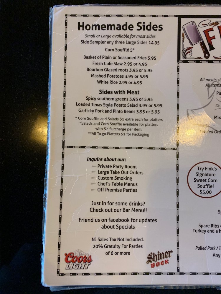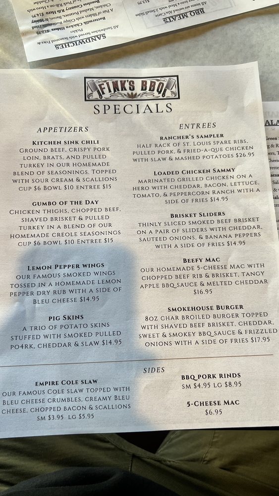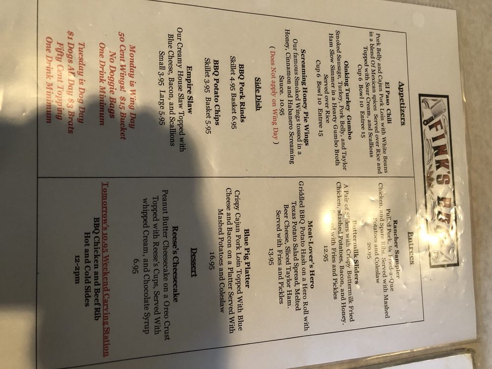 Fink’s BBQ Smokehouse Menu (Update 2025)